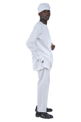 White Top, Pant & Hat Set for Men | Long Sleeve 3 Piece Outfit with Pockets