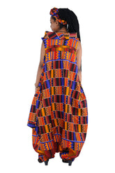 African Long High Neck Jumpsuit with Headwrap – 100% Cotton, Pockets
