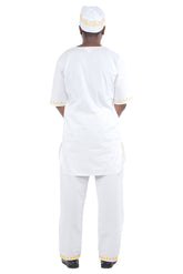 Men’s African Embroidered Top & Pant Set w/ Hat – 2pc Outfit 4XL–5XL