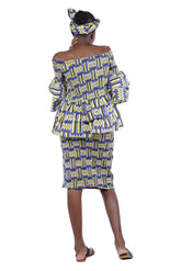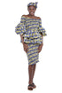 African Smocked Blouse Skirt Set w/ Head Wrap | Ankara Dashiki Print Dress Attire, One Size