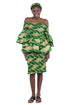 African Smocked Blouse & Skirt Set w/ Head Wrap | Ankara Dashiki Print Dress Attire, One Size