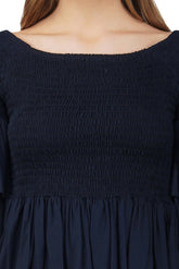 Navy Smocked Off Shoulder Blouse, Double Layer Attire, 100% Cotton