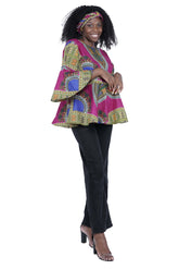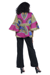 Purple Dashiki Umbrella Sleeve Blouse