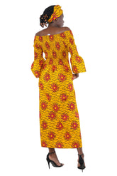 Transform your wardrobe with our African Long Maxi Dress! Made of 100% cotton, this dress boasts both style and comfort. It features 2 convenient pockets and comes with a matching headwrap for a complete look. Upgrade your fashion game with this must-have piece!