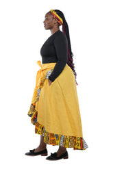 Experience the vibrant energy of African culture with our Yellow African Trim High Low Ruffled Skirt! The elasticated waist band provides a comfortable and flattering fit, while the 2 convenient pockets add practicality. Complete the look with the matching headwrap. Feel bold and beautiful in this unique skirt!